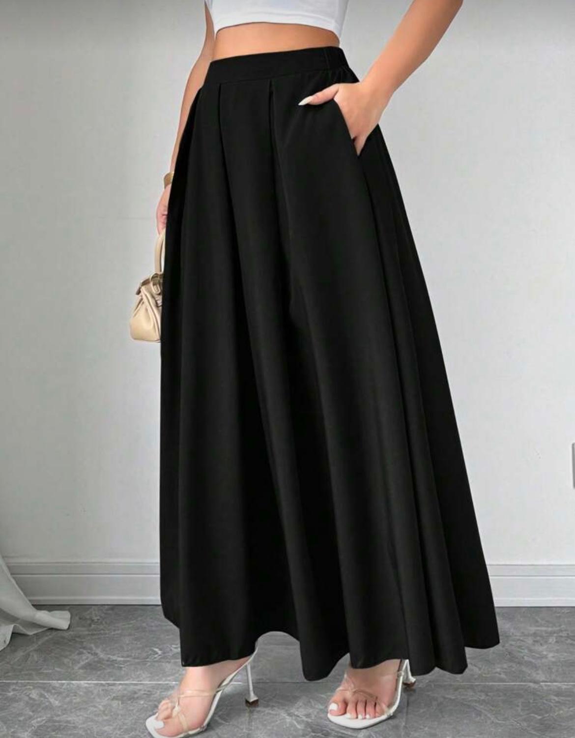 Jupe longue plissée élégante avec poches , convenable pour le quotidien domicile travail