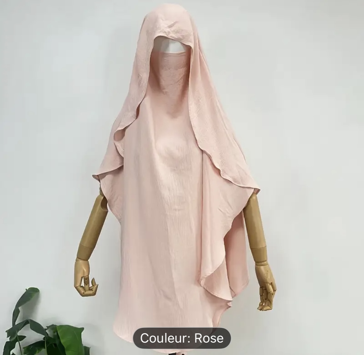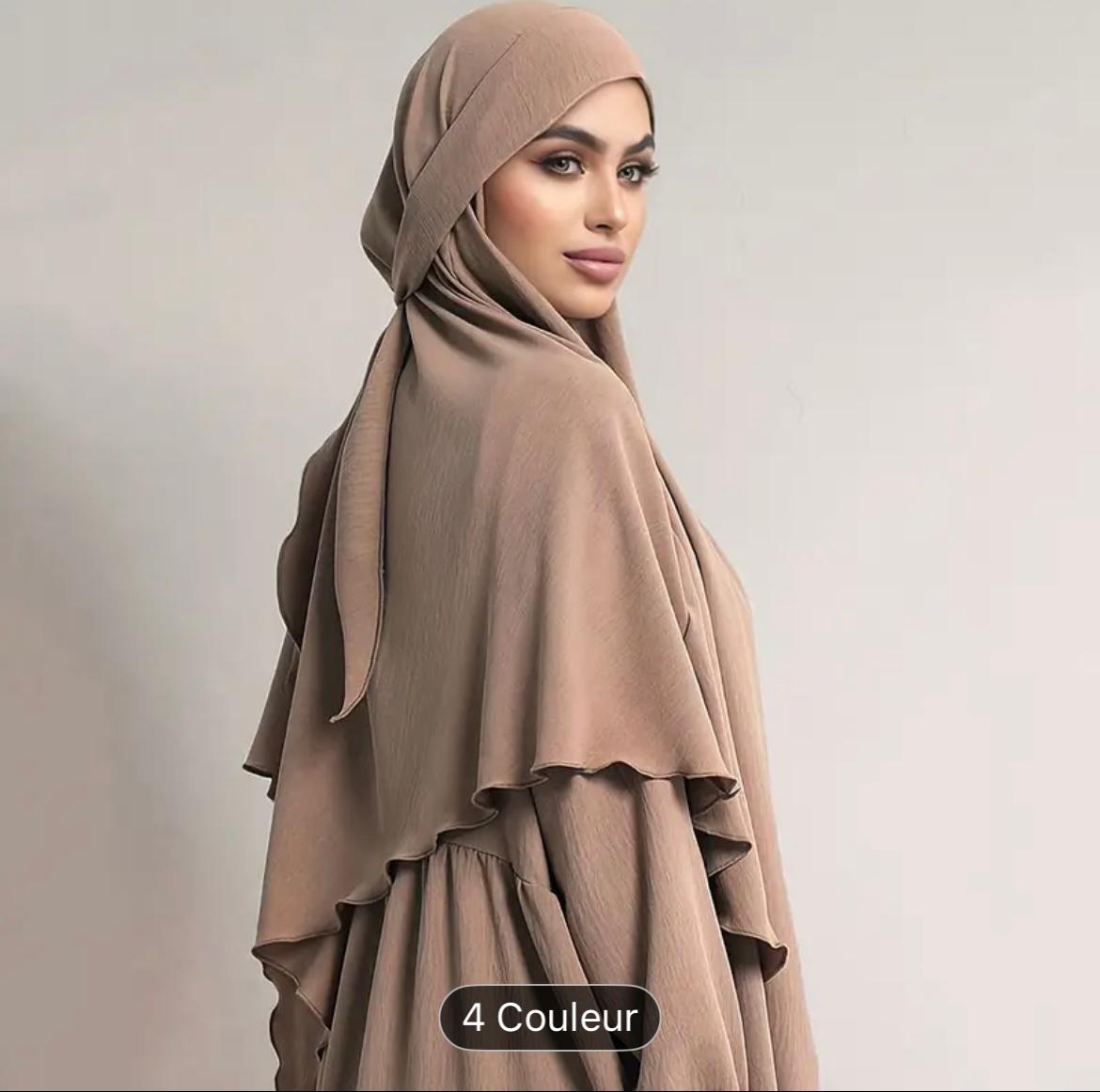 Voile khimar élégant, tissu en soie glacée, respirant non collant
