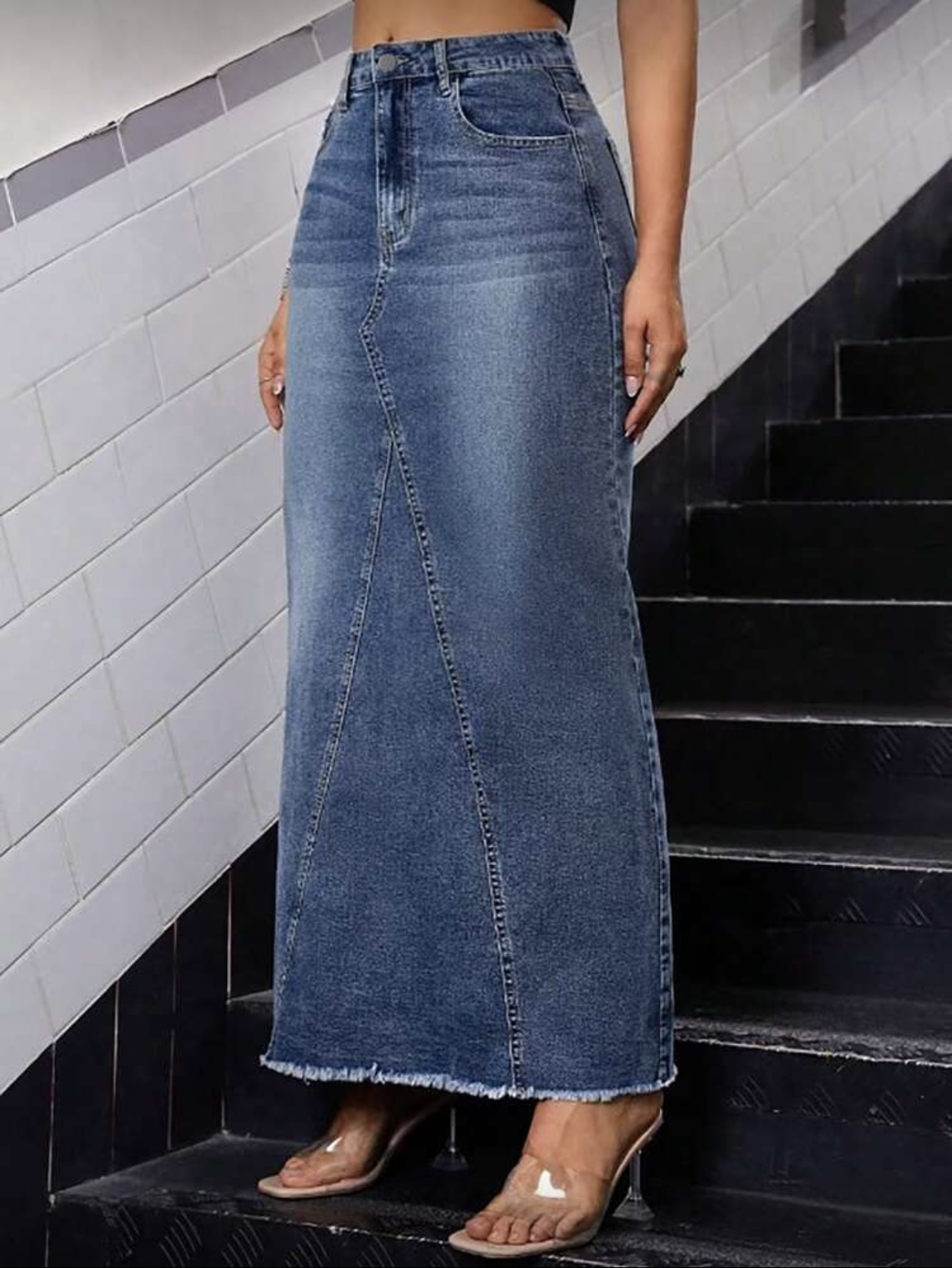 Jupe longue, coupe slim, avec détail de fente et design de poche, décontractée pour le printemps, l'été, l'automne, l'hiver