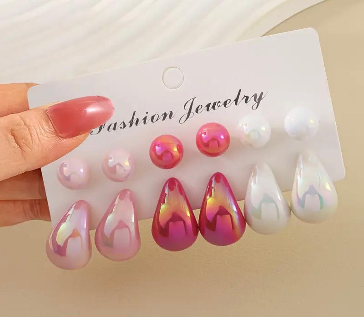 6 paires de boucles d'oreilles élégantes en forme de larme rose pour femmes- tiges en acier inoxydable.
